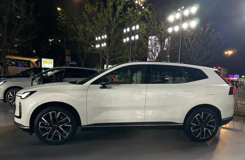而相比品牌在售的XC系列,这台主打电混方案的车型还是融入了一些新能源特征,例如半封闭式前脸(主动格栅)、双色低风阻轮圈(三种样式,最大21英寸)、无框车门、隐藏式门把手等等,都更能凸显科技主题。。